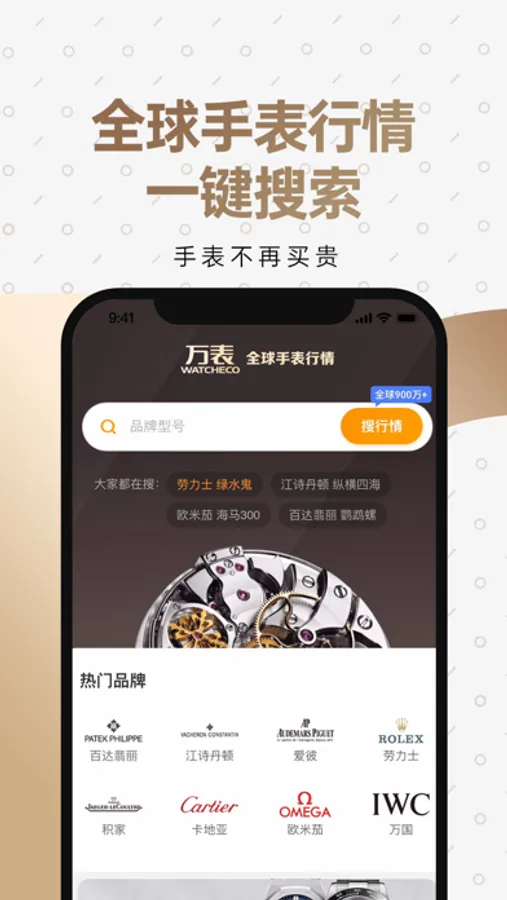 万表平台建立了行业内领先的手表价格行情信息数据库,实时采集监控全球二手表行情,提供权威、全面、专业、及时的手表行情数据,方便买家卖家随时搜索查询全球手表价格行情、型号、参数。