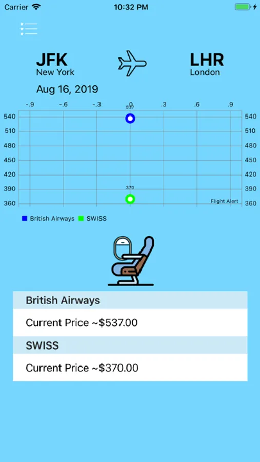 Flight Alert will tell you which Airline has the current lowest price for the flight you are interested in and will notify you if an airline has a drop in price.