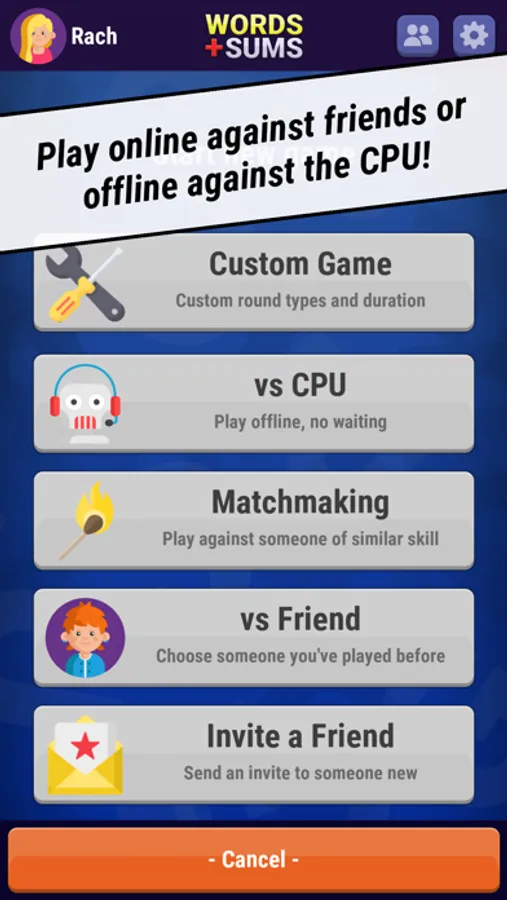 - play against anyone