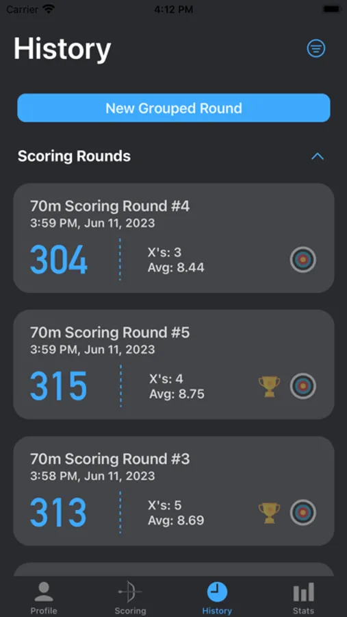 • Group scoring rounds together when they’re part of a tournament or to view group statistics