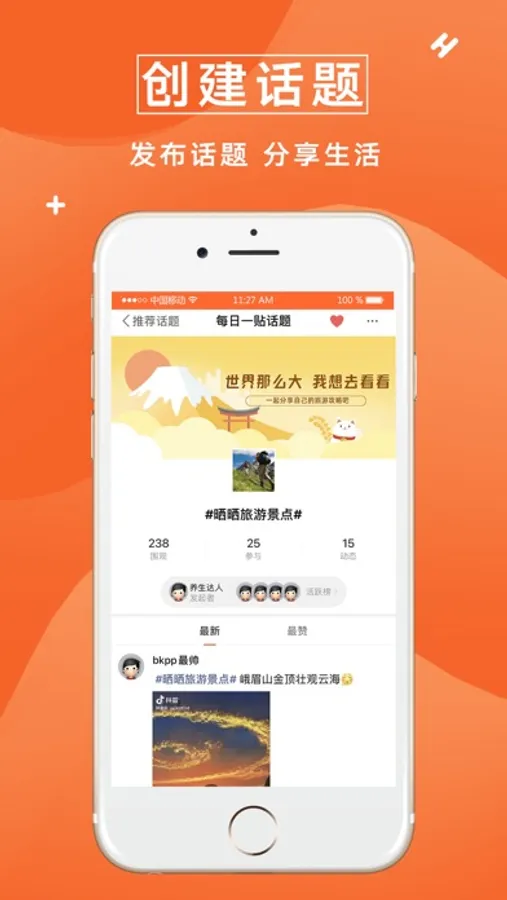 话题:打造你的兴趣话题,与朋友们一起分享和讨论。
