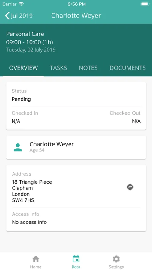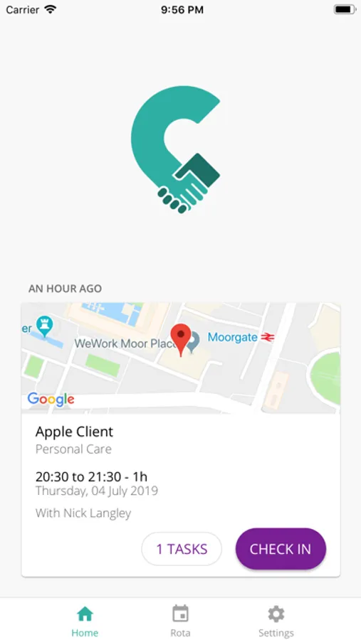 The CareLineLive carer companion app allows carers to view their rota, check in and out of visits, and access important client information before they arrive.