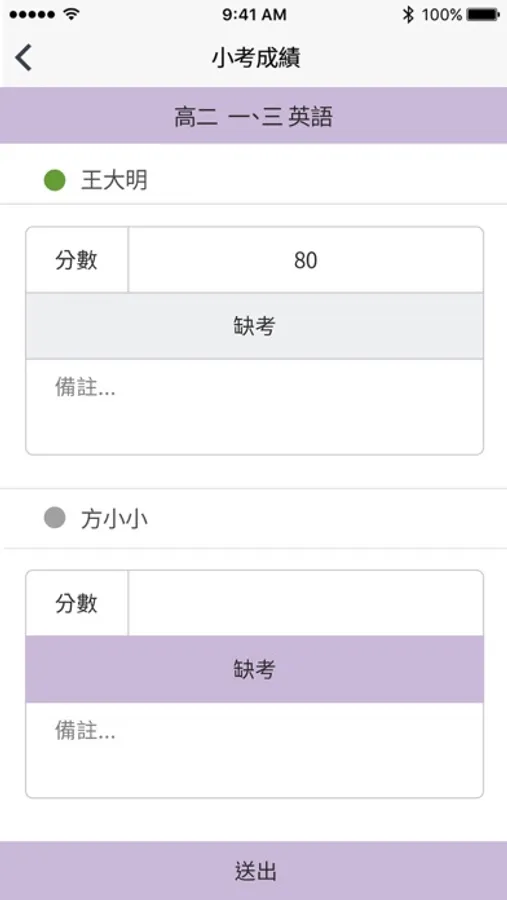 2. 通知單:讓校方快速填寫學生的明日應攜帶物品、注意事項