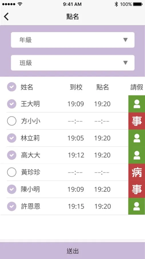 7. 離校通知:家長可以在接孩子下課時提前按下預約鍵,減少等候時間。