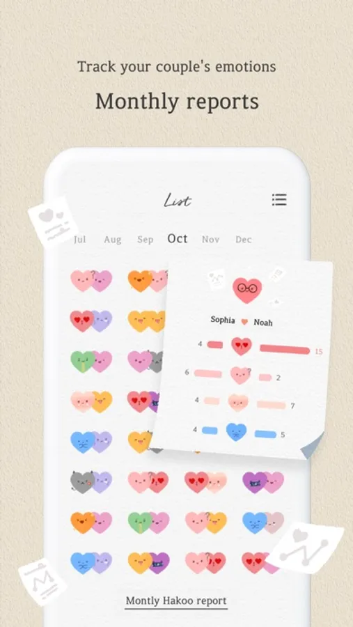 Every time you answer a question, you can select and share how you’re feeling that day. At the end of the month, our little helper (and EggMon’s best friend) Hakoo will gather it all and share the record of your love with you!