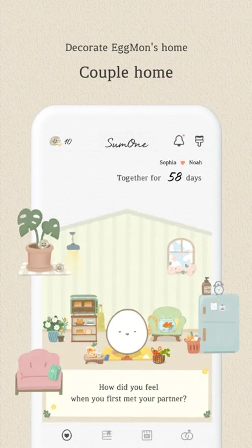 Get together with the one who makes your heart flutter, create a space to raise a new friend together, and discover something about each other every day!