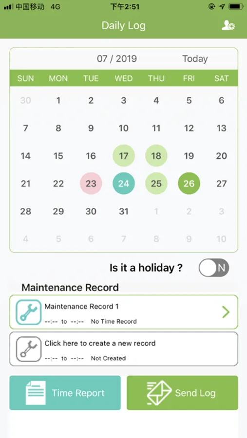 The functions of the App include personnel travel time record, maintenance time record, maintenance information record, then generate EXCEL reports, which can be sent to users and administrators.