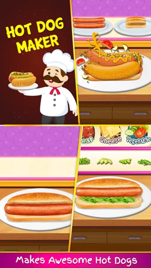When we listen to the word fast food what clicks in our mind is Hot Dog, Burger, Pizza, etc. Isn’t it yummy and delicious something you can savor upon whenever and wherever? Are you in love with fast food and are you in love with cooking? I believe there is a little chef/s in your house who is willing to experiment in the kitchen restaurant game; If yes, look no further and here we are with our all new free cooking game for your little ones Hot Dog, Burger, Pizza Cooking Restaurant Fast Food Game.