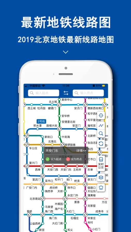 北京地铁App,一款专业地铁出行智能助手。拥有2019最新地铁线路图,查询推荐最优换乘线路,最新站点信息全掌握(含周边)等地铁出行信息和功能。