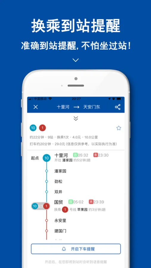 最优换乘线路:时时监控地铁运行状态(通畅或拥堵),查询推荐最优换乘线路,以及乘坐的时间,票价,距离。