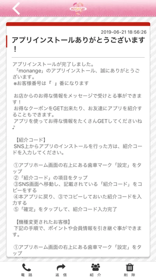 monangeのアプリをSNSを通じてお友達に紹介する事ができます。