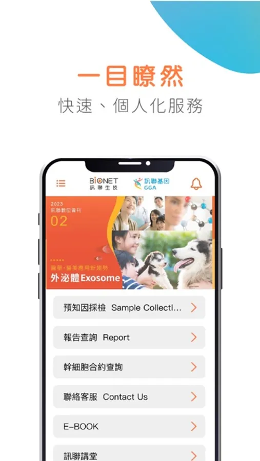 訊聯 X 創源 APP 提供您多樣化的服務,包括:基因檢測採檢說明、報告查詢、 精準健康與細胞儲存新知、幹細胞儲存合約查詢、歷年細胞品質測試報告、健保署健康存摺 (串接預知因檢核用藥歷史紀錄&風險提醒) 、預約報告專人諮詢、聯繫細胞運送專線…等多元化功能,讓您透過行動裝置,更輕易地關注維護自己和家人健康,共創更美好的生命品質。