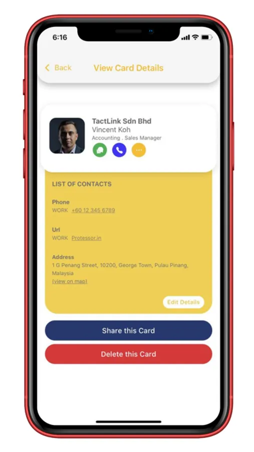 - Stay connected with all the contacts with the following actions: Call, Copy, Directions, Email, Message
