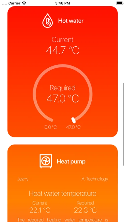Be sure to try a neat widget that shows the current and required temperature, outdoor temperature, hot water temperature and heating water temperature.