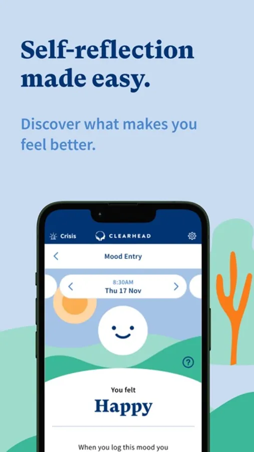 Clearhead is your personal guide to wellbeing. It is a free, one-stop-shop mental health platform (app + website). We help you achieve mental wellbeing by understanding your challenges and providing you with personalised support and access to free resources and self-management tools.