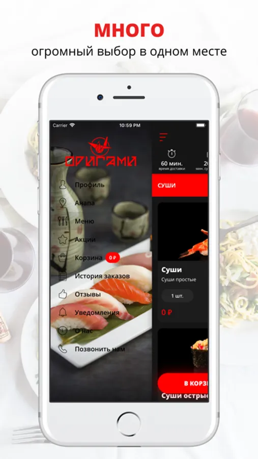 Оригами - это талантливейшие и опытные повара, квалифицированный персонал, вежливые и чуткие операторы, уютный и современный интерьер, сервис оперативной доставки и самое главное безграничное желание удивлять посетителей. Наши постоянные клиенты ценят нас за безупречный сервис, приветливый персонал и ценовую доступность.