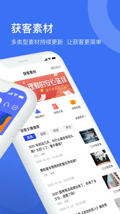 营销文章精准获客,微信朋友圈海报助手增强互动,多款险种配套营销素材助力推广获客,个人品牌轻松打造,线上展业不再难!