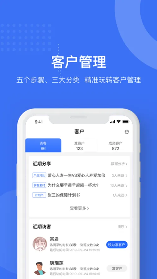 智能客户管理系统,发掘更多销售机会助力成交;保费在线测算,利益演示更准确,简单顺畅易成单。