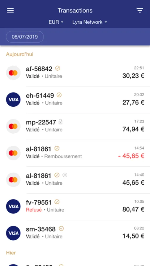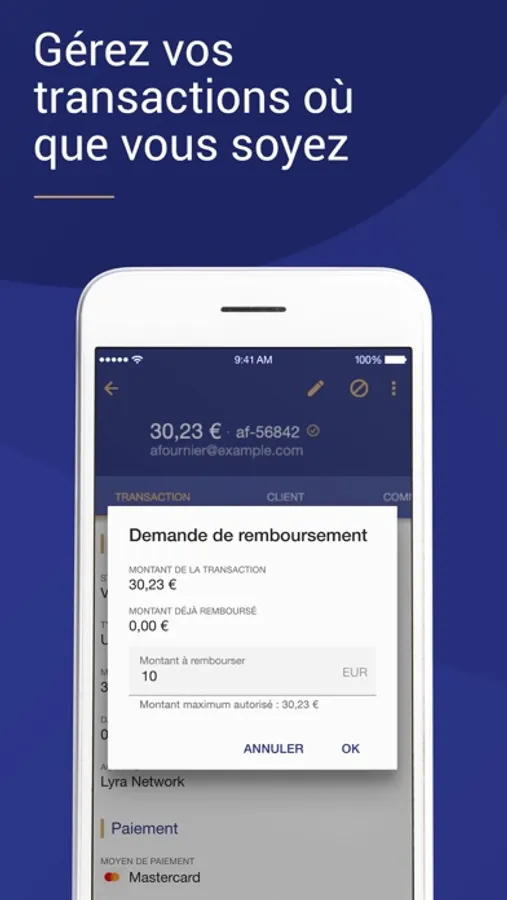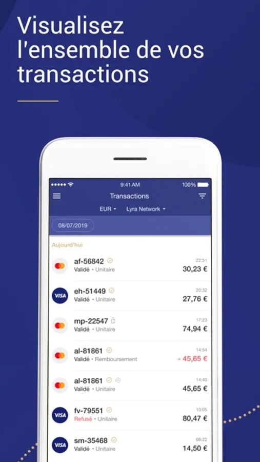 This user-friendly mobile application contains all the Lyra Collect Back Office features allowing you to easily manage your e-commerce payments: