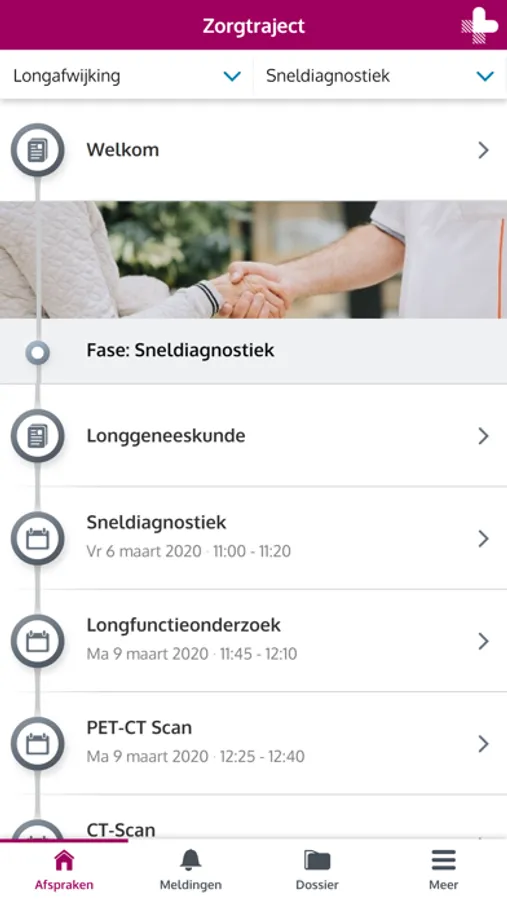 Met de app MijnJBZ kunt u uw medische gegevens altijd inzien. Alle afspraken en behandelingen staan voor u op een rij via een persoonlijke tijdlijn. U ziet meteen of u zich voor de afspraak moet voorbereiden. Moet u een vragenlijst invullen? Ook dat kan via de app. Zo bereidt u zich goed voor op uw afspraak in het Jeroen Bosch Ziekenhuis.