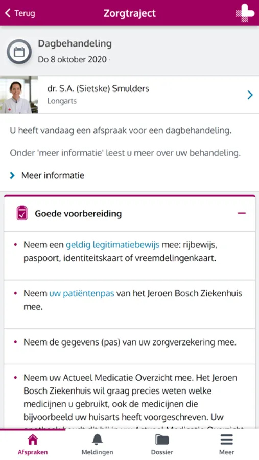 • Patiënt bent in het Jeroen Bosch Ziekenhuis;