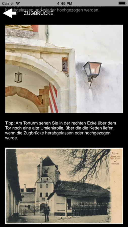 Der Rundgang wird zum Erlebnis: Neben spannenden Informationen zur Veste Oberhaus in Passau, zum Oberhausmuseum und zum Naturerlebnis am Georgsberg bietet die Veste Oberhaus-App einen Multimediaguide, der den Besucher „Auf den Spuren der Ritter und Fürstbischöfe“ durch die Burganlage und das ganze Freigelände führt. Zahlreiche Stationen bieten mit wissenswerten Informationen, Bildern und Filmen faszinierende Einblicke in das Leben auf der Burg und nehmen den Besucher mit auf eine Zeitreise. So erwacht die einstige Zugbrücke zum Leben, Vergangenes wird wieder sichtbar. Eine Panoramatour zeigt die schönsten Aussichtspunkte und die Schatzsuche lädt den Besucher ein, an authentischen Fundorten Gegenstände aus alten Zeiten zu entdecken.