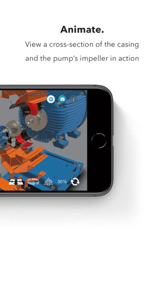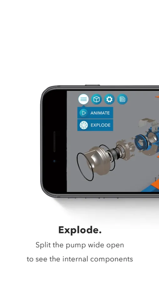 • Explode feature breaks the model open, allowing you to examine the pump’s internal components