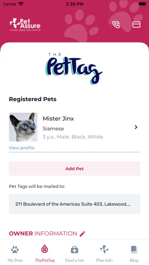 With the Pet Assure app you can: