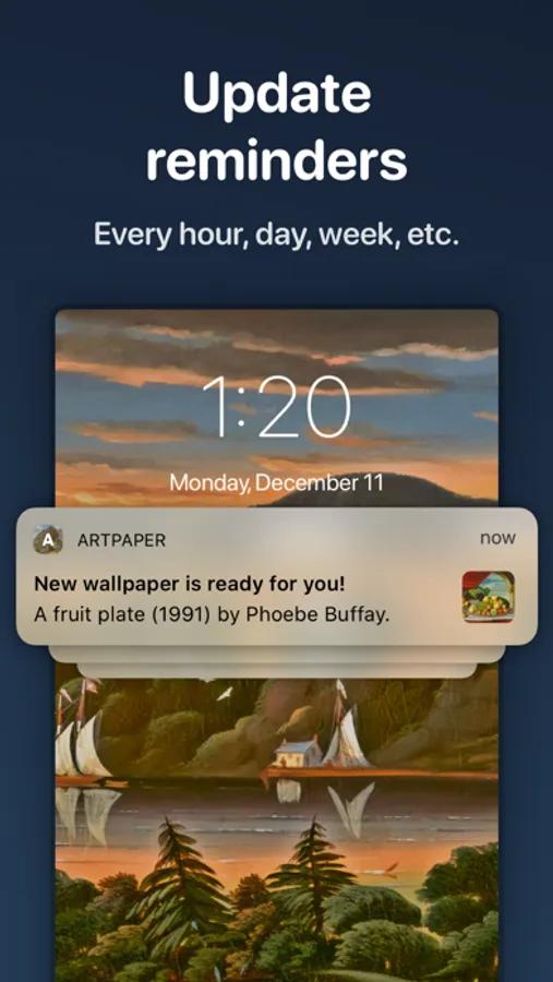With Artpaper, you'll never get bored with your homescreen background again. It reminds you to set a new wallpaper. Just set an interval: hourly, daily, weekly, monthly, etc.