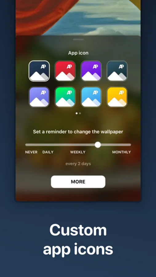 Artpaper also features 9 customizable app icons. Pick the one which would look the best on your homescreen!