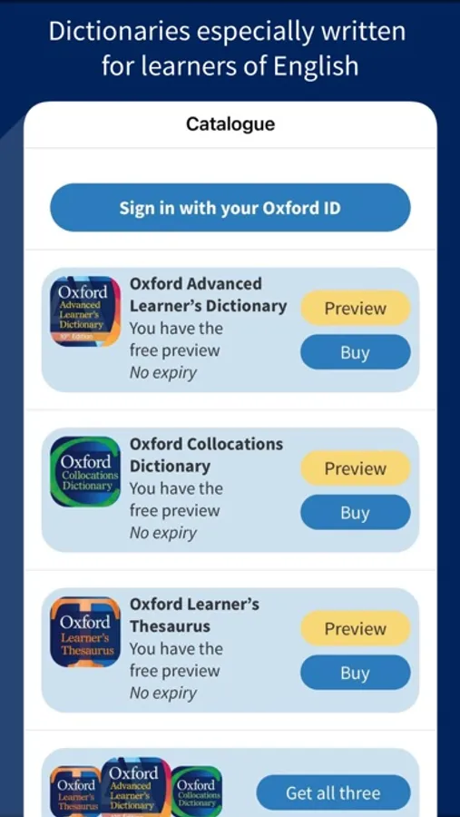 Check out the free sample content for each dictionary, or sign up for a short full trial. You can purchase access to individual dictionaries or get all three.
