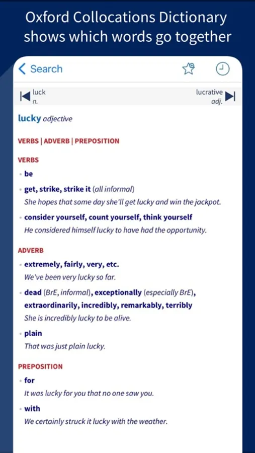 The Oxford Collocations Dictionary shows you which words work together and helps you express your ideas naturally and convincingly. It is especially useful for writing essays or preparing for exams in English. For example, which adjectives can you use to describe ‘scenery’? Which verbs can you use with ‘challenge’?