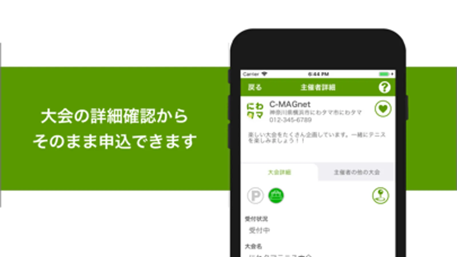テニス大会のエントリーサイト「にわタマ」の公式アプリ。無料で様々な大会・イベントを検索!気になる大会をアプリで簡単予約!出場した大会の戦績メモを残して練習に活かすことも出来ます!