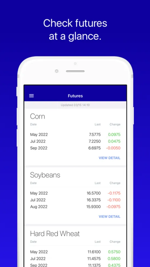 Futures: See Grains, Feed, Livestock, and Ethanol futures listed in order of your preference