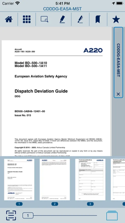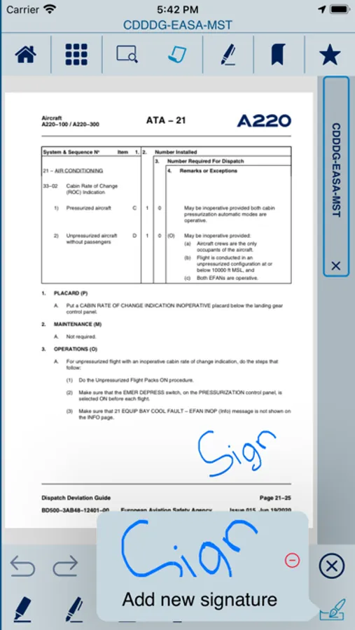 No more carrying pounds of aircraft manuals and documents on-board. No more waiting for Temporary Revision (TR) updates. With the Airbus A220 Flight Deck* application, Airbus* aircraft pilots can enjoy the benefits of going paperless¹ by being able to store and access manual data and other documentation instantly from their iPad® - without Wi-Fi. No other solution combines automatic TR updates, user control of content and aircraft serial number-specific information into one application. Airbus A220 Flight Deck* also includes all required FAA, EASA and TC compliant audit trails for paperless¹ operations.
