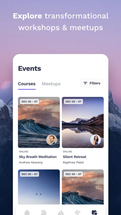 Plug-in to the largest network of Meditation meetups in the country. Select from one of the several hundred locations nationwide and RSVP directly from your mobile device. Find your tribe, meditate in groups with a trained instructor and learn more about SKY breathing technique. For a limited time, instructor led meetups are offered via Zoom.