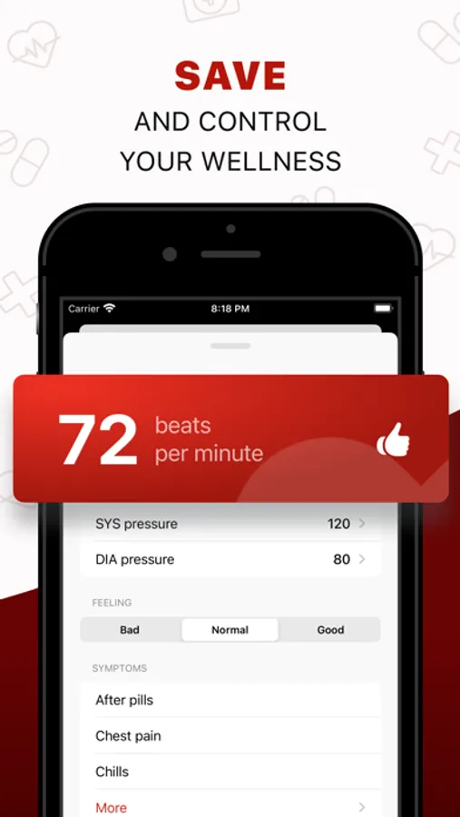 BLOOD PRESSURE TRACKING – an effective way to monitor one of the most important indicators of heart and vascular health. Add pressure values and track your wellness
