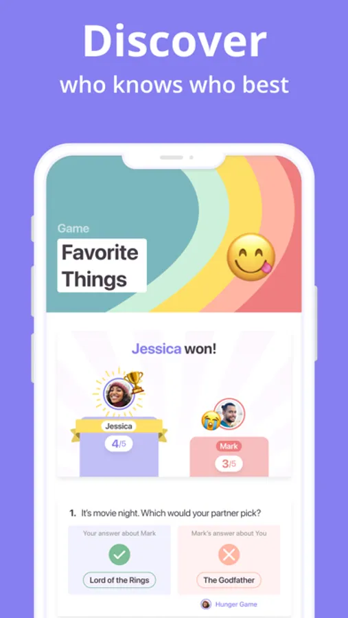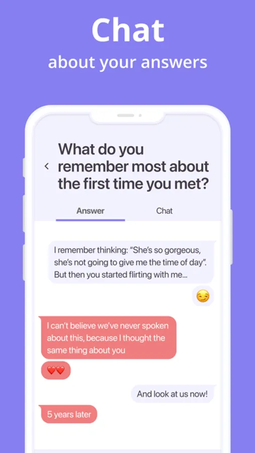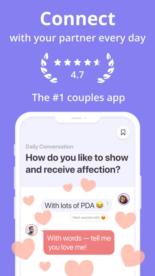 * Answer fun daily questions for couples to bring you closer together. You can only see your partner’s response once you have both answered!