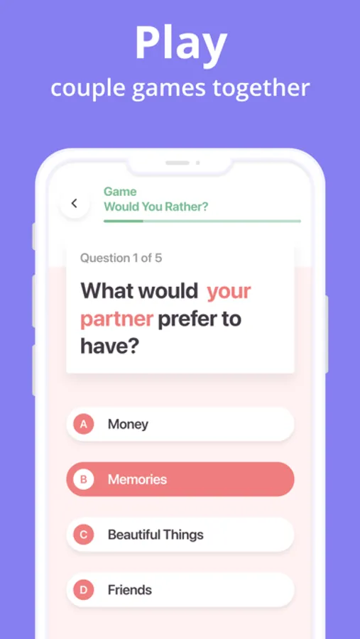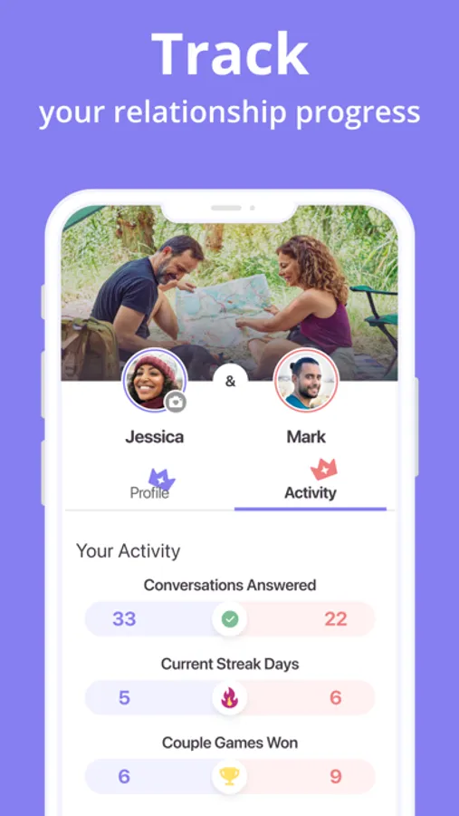 * Learn more about each other’s love language, attachment style, and more with our couple games