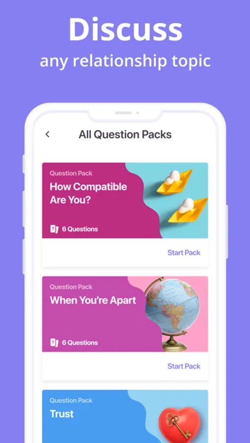 Paired is a relationship care app that offers daily couple questions, relationship games, quizzes, exercises, and expert video guidance on all relationship subjects — from sex & intimacy to connection and growth. Learn how to strengthen your relationship and bond with your partner with our library of research-backed, expert-led content.