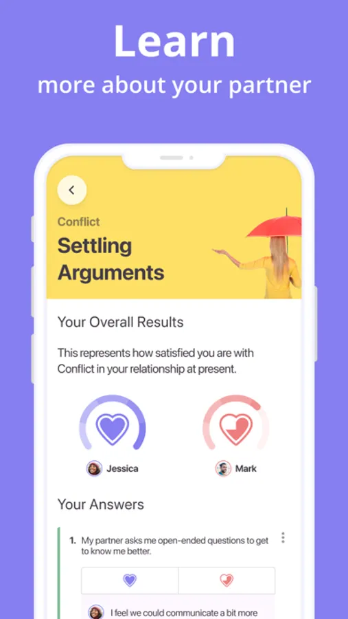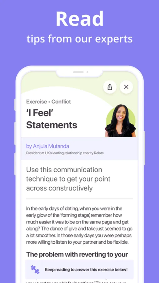 * Complete interactive couple exercises designed by leading experts — from how to navigate arguments to improving your sex life