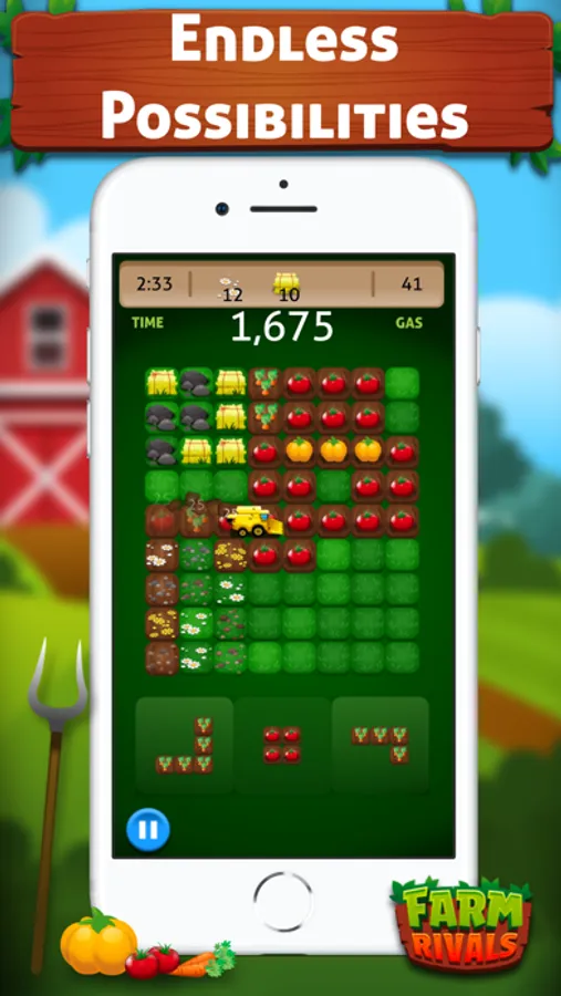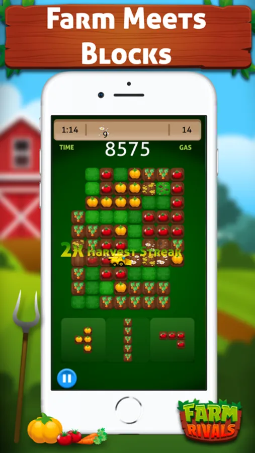 Plant crops by moving blocks on to the board, fill rows or columns to harvest, score points and win! Seconds to learn, but only the most seasoned farmer will harvest the most!