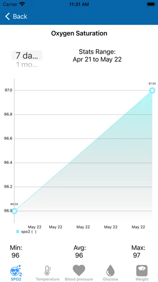Blood glucose, Blood Pressure, Weight, Temperature, Oxygen Saturation, Pulse