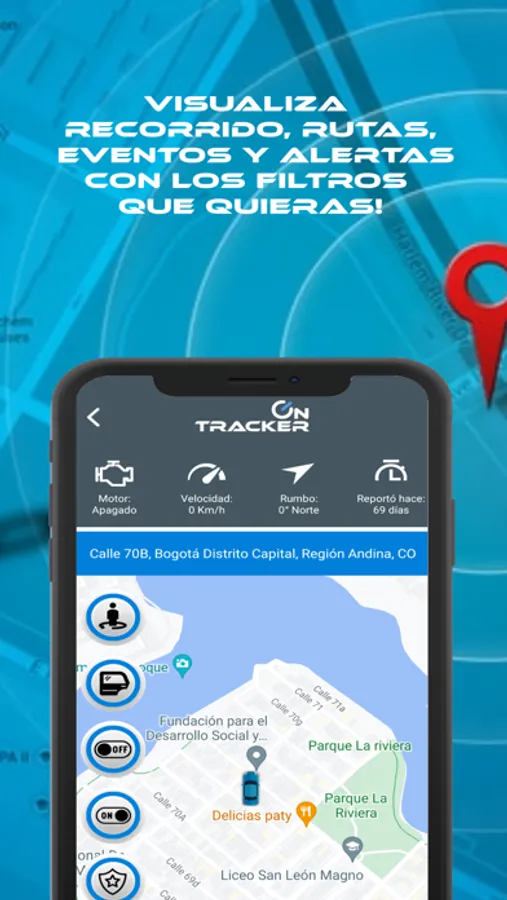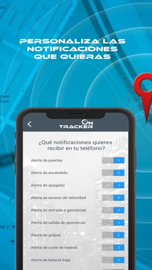 Con onTracker podrás además de rastrear tu vehículo, apagarlo remotamente, recibir alertas de apertura de switch o llave, apertura de puertas, golpes, exceso de velocidad, entrada/salida de geocercas entre muchas otras opciones.