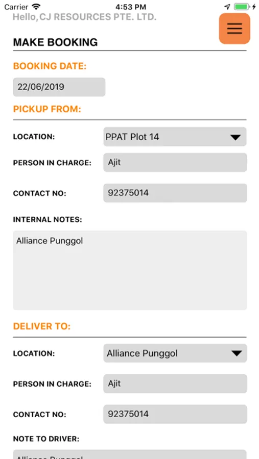 This application is referred to customer who create booking with material . The customer can view the ongoing booking and also jobs done booking . The customer can download the statement of supply (SOS ) and duplicate booking if they want .The customer can top up amount by himself . We also add local push notification function after created the booking . If the booking process is successfully completed , the estimate amount will be reduce from ewallet amount.