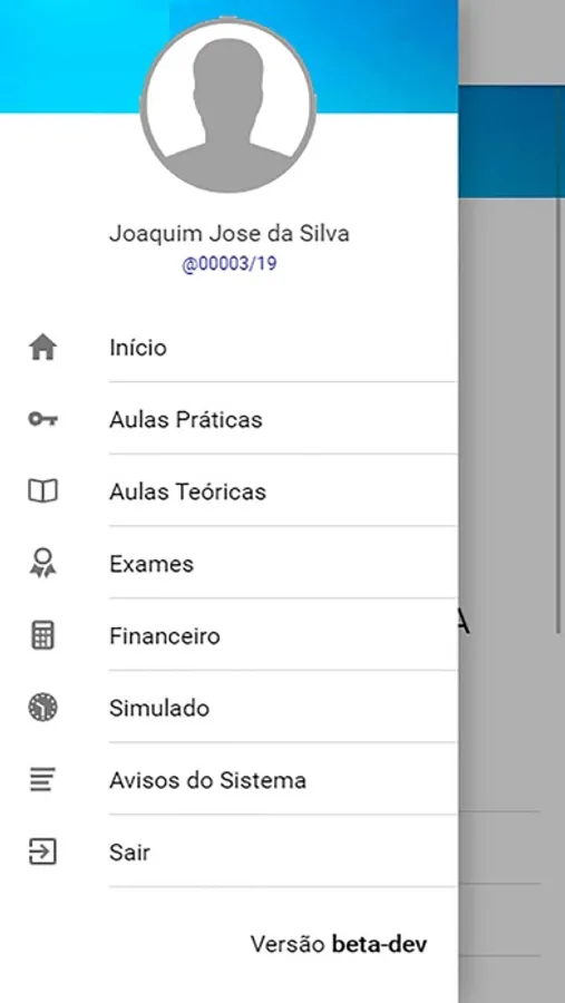 Neste aplicativo o Aluno de uma CFC (associada ao sistema) poderá acessar os seguintes itens: