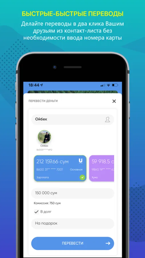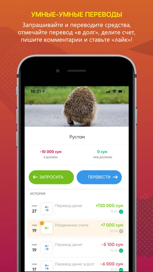 — умные-умные P2P-переводы по контакту с возможностью запроса/перевода в долг, а также возврата полученных в долг средств