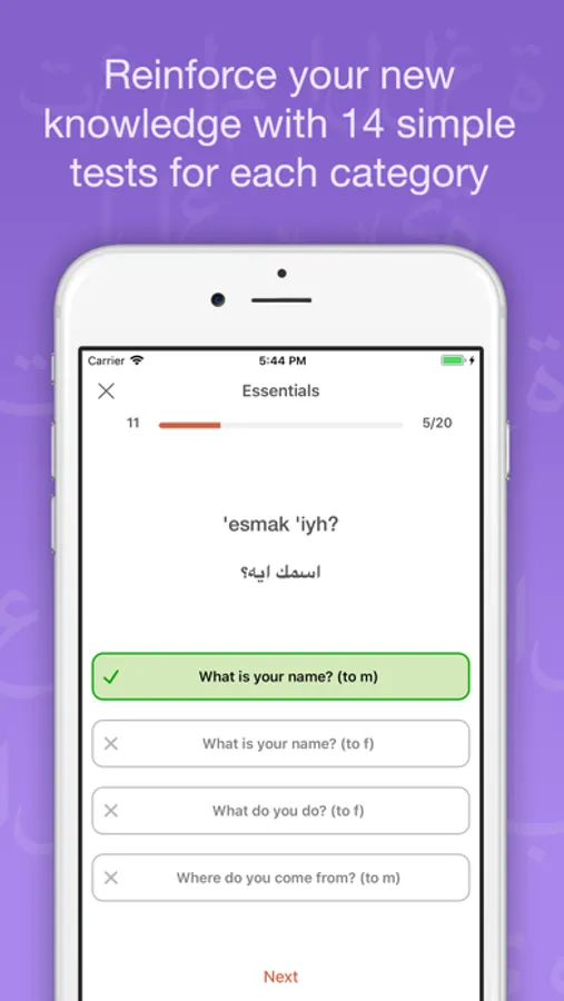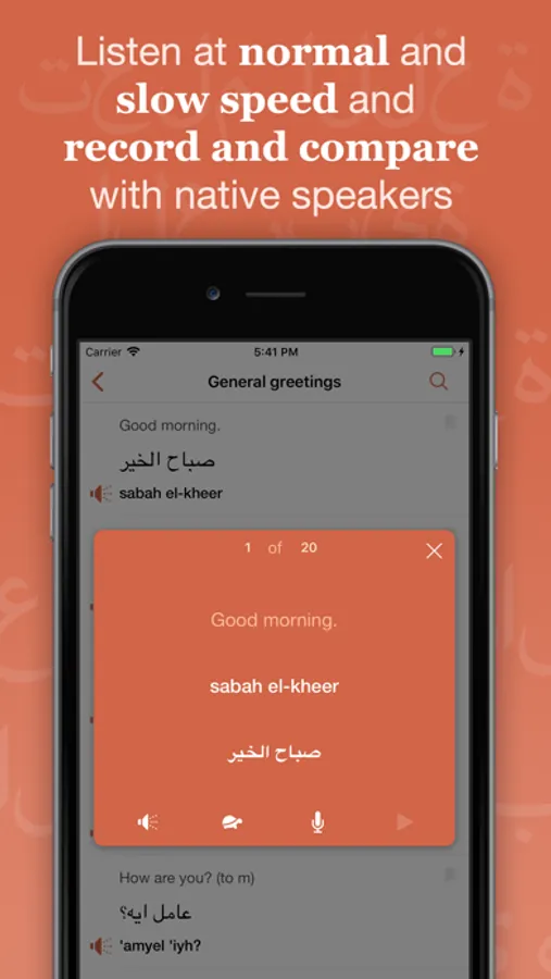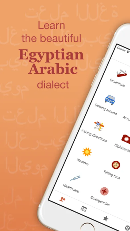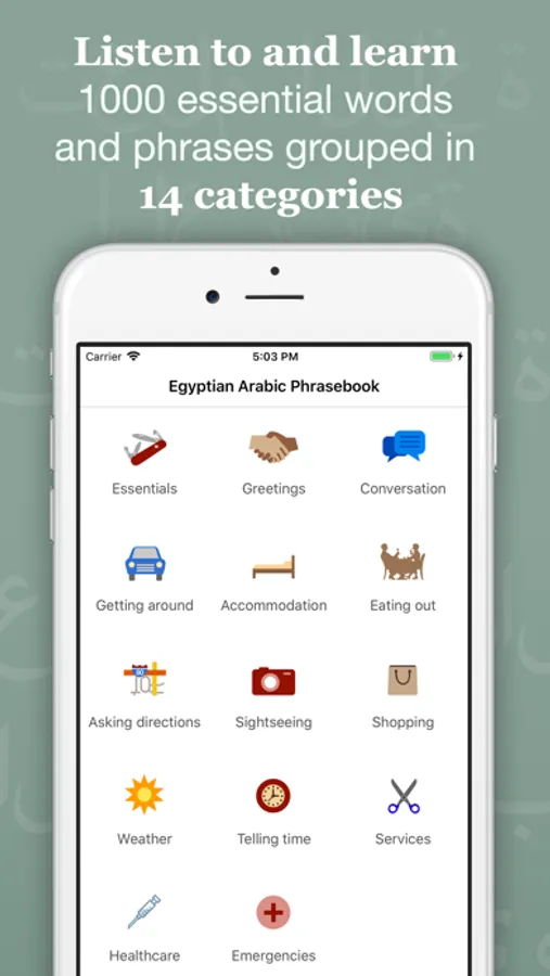 1. Learn 1000 words and sentences contained in 14 in-depth topic areas to help you build a broad Arabic vocabulary.