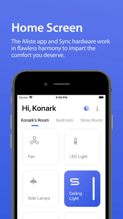 Aliste - the simple and reliable means to control all the home appliances connected to Sync, the home automation device. With Aliste, it becomes easier for an user to control all the appliances connected to Sync with a single touch on their smartphone. The App can be used to turn switches on and off according to the user’s requirement. Furthermore, the App also enables the following mentioned functions: