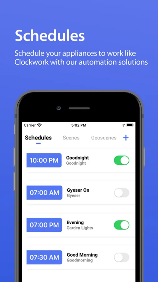 3 - Aliste allows you to set schedules for your electrical appliances, thereby increasing the convenience with which you operate your appliances. Control the automated functioning of the home appliances according to your schedule.